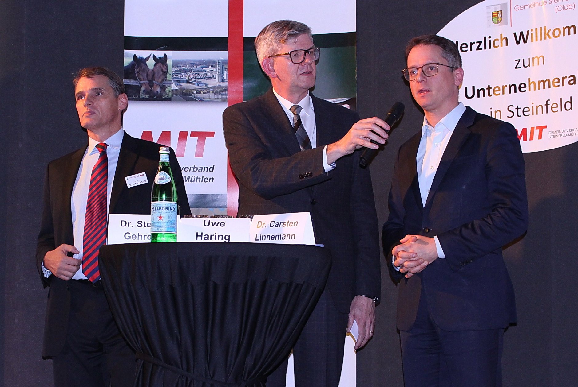 Foto(s): Andreas Sobotta, Hannover Text Foto 1: Über die Fragen geben unter der Moderation des Journalisten Uwe Haring Auskunft: Dr. Stefan Gehrold MdEP und Dr. Carsten Linnemann MdB. Text Foto 2:(v.l.n.r.): Hubert Pille, stellvertretender Bürgermeister der Gemeinde Steinfeld, Dr. Carsten Linnemann MdB, Bernd gr. Holthaus, Dr. Stefan Gehrold MdEP und Uwe Haring. Text Foto 3: Die Veranstaltung hatte „Sitz und Muster“. Hier der Vorsitzende Bernd gr. Holthaus.
