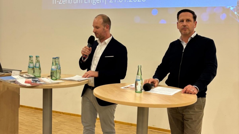 Michael Schnaider, Geschäftsführer der it.emsland und Sascha Baden, Projektleiter & Netzwerkmanager im Mittelstand-Digital Zentrum Lingen.Münster.Osnabrück, referierten zum Thema digitale Transformation im Emsland. Als besonderer Gast des MIT ordnete Jens Hofschröer, Stadtrat für Digitales und Wirtschaft der Stadt Wolfsburg und Oberbürgermeisterkandidat der CDU Lingen (Ems) das Thema aus seiner Perspektive ein und beantwortete Fragen aus dem Publikum.