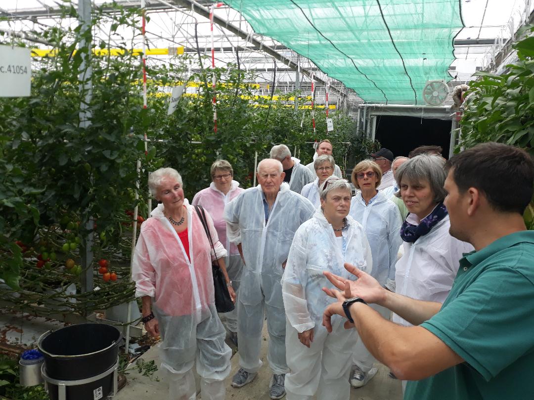 Im Juli besuchte die Mittelstands- und Wirtschaftsvereinigung (MIT) des Kreises Viersen den Betrieb von Carsten Knodt in Tönisvorst. Der Betrieb liegt in Unterschelthof zwischen St.Tönis und Kempen und produziert komplett unter Glas. So staunten die Mittelständler nicht schlecht, wie weit hier die Digitalisierung bei der Produktion von Paprika, Tomaten sowie Auberginen bereits mithilft. Alles kann man nicht automatisieren, so Markus Knodt. Mit Schutzanzügen schauten sich die Besucher die 4 Hektar unter Glas an und schauen den Mitarbeitern über die Schulter. Früher war der Betrieb an der Rosenstraße in St.Tönis und wurde Anfang der 90er Jahre nach Unterschelthof umgesiedelt. Weitere Betriebsstätten gibt es in Sonsbeck sowie am Kraftwerk Niederaußen. Carsten Knodt beliefert regionale Diskonter am Niederrhein, um lange Transport- wege zu vermeiden. Landtagsabgeordnete Britta Oellers war begeistert von den modernen Produktionsstätten. MIT-Kreisvorsitzender Maik Giesen lobte das Engagement, die Weiterentwicklung des Betriebes und die Schaffung von neuen Arbeitsplätze im Betrieb. Zum Abschluss gab es für die Besucher eine gefüllte Tasche mit Tomaten und verschiedenen Paprika.