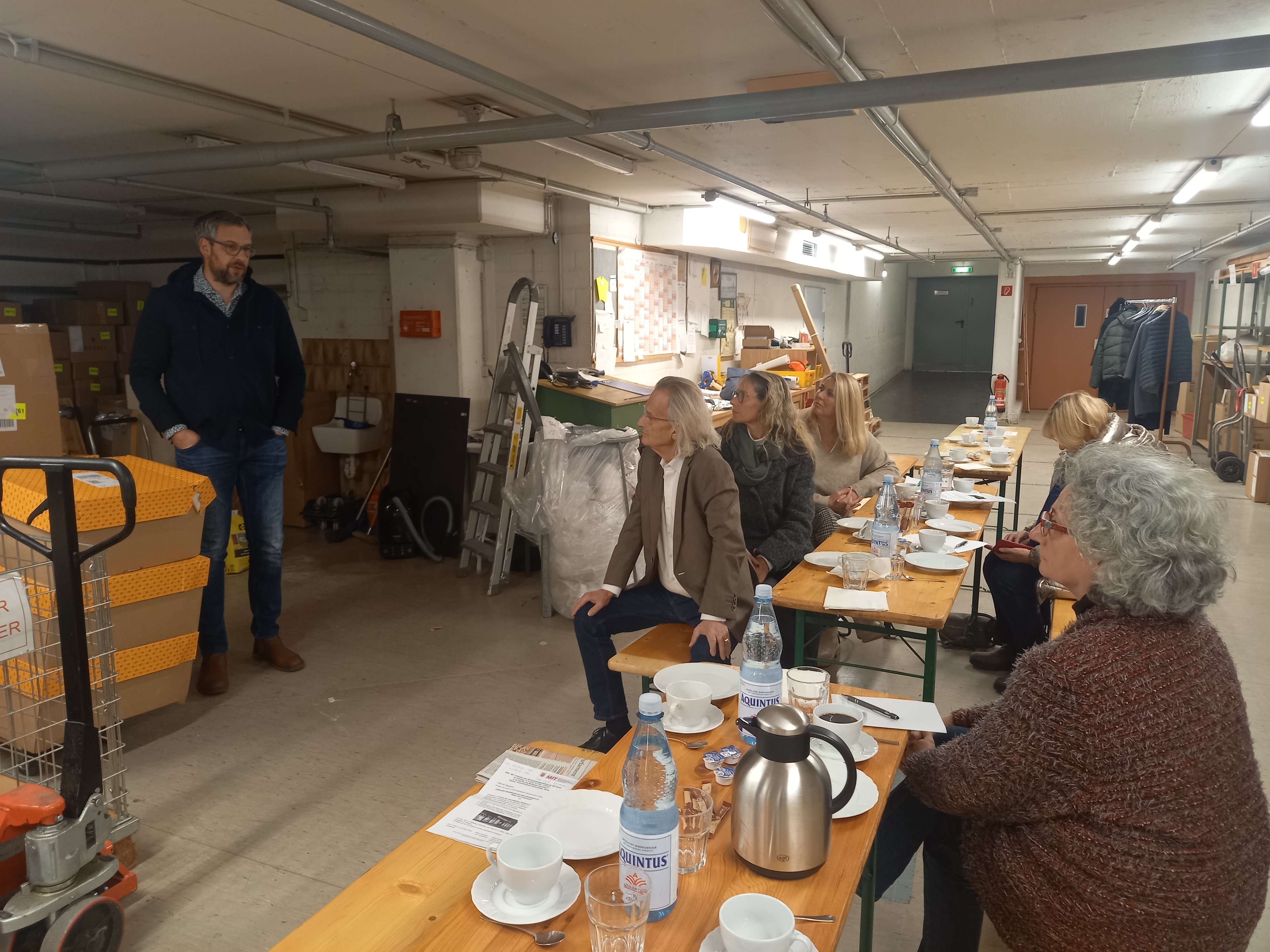 Das Neusser MIT-Bundesvorstandsmitglied Bärbel Kohler hatte die Veranstaltung organisiert. Der engagierte Geschäftsführer Thomas Ole begrüßte die Vertreter der MIT Neuss sowie den niederrheinischen MIT-Bezirksvorsitzenden Maik Giesen im Wareneingang des Modehauses zum Frühstück.