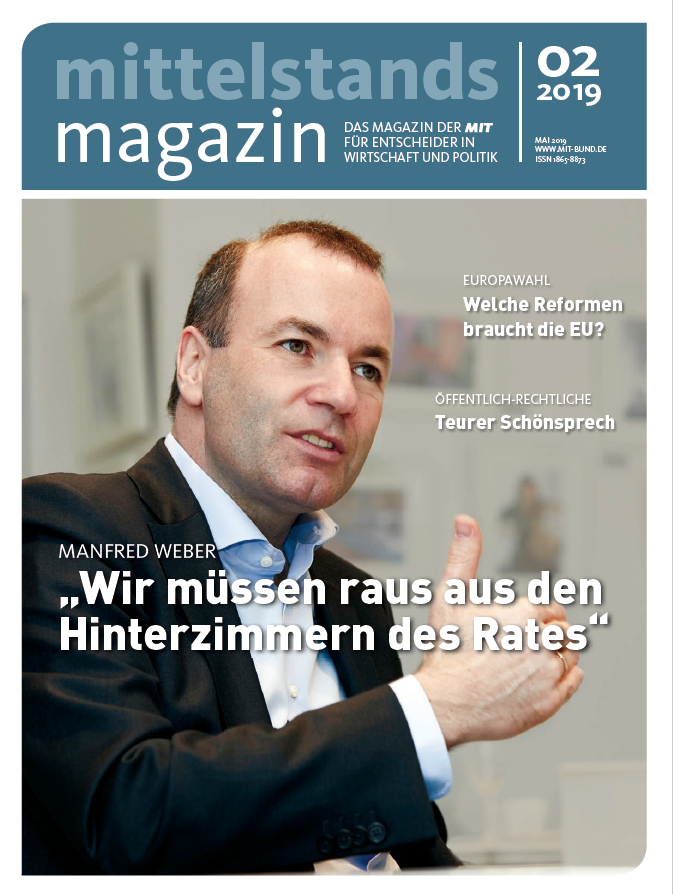 Eine neue Ausgabe des Mittelstandsmagazins ist da. Kurz vor der Europawahl beschäftigen wir uns mit der Frage: Was hat die EU geleistet? Was hat sie versäumt? Außerdem haben wir EVP-Spitzenkandidat Manfred Weber interviewt. ARD, ZDF, Deutschlandfunk und Co. sind der teuerste öffentlich-rechtliche Rundfunk der Welt. Nur - was passiert eigentlich mit den ganzen Beitragsgebühren?