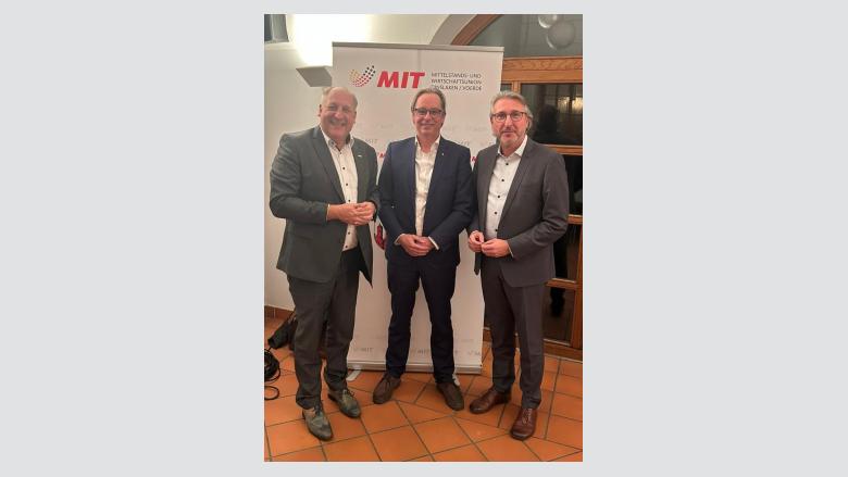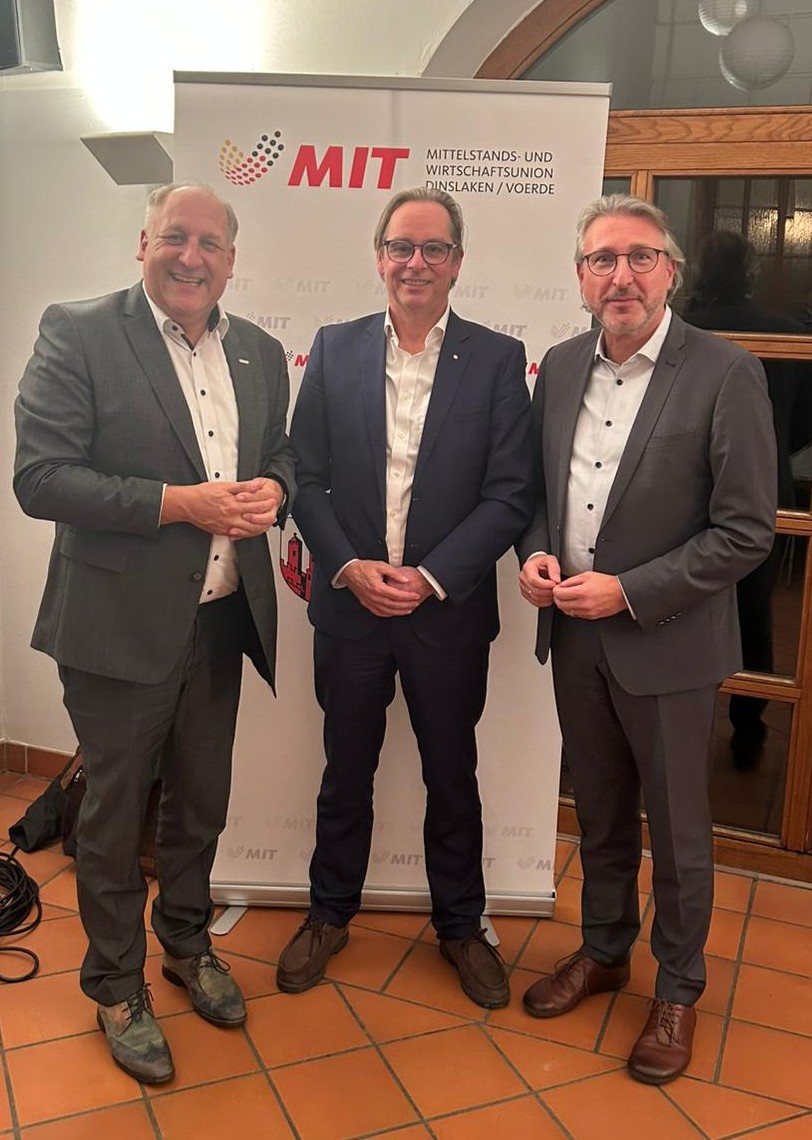 (v.l.: Maik Giesen, MIT-Bezirksvorsitzender Niederrhein, Dr. Stefan Berrisch, RWE Power AG, Frank Steenmanns, MIT-Vorsitzender Dinslaken-Voerde)